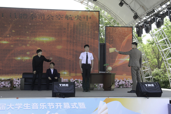 活动的第三篇章《鹰击长空》以中国民航大学“两航青年社”学子带来的原创话剧《两航起义》为核心,通过舞台光影的巧妙运用,生动再现了1949年爱国航空人冲破封锁、驾机北归的壮举。“信仰的力量穿透时空,让我们深刻感受到了先辈们的英勇与担当。”一位现场观众感慨道。天津大学与天津音乐学院的优秀学子们随后以《夜空中最亮的星》深情和鸣,点点“星光”与东丽湖的波光粼粼交相辉映,历史壮举与当代青春在此刻交相辉映,共同诠释了使命与担当。