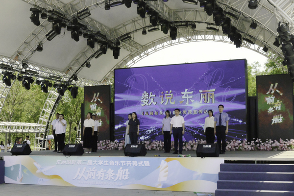 “竹板声声溯漕魂,碧水悠悠话传承!”6月7日,随着中国北方曲艺学校张雨生一曲快板《东丽湖畔话漕魂》的清脆响起,东丽湖畔第二届大学生音乐节开幕式暨“从前有条船”青春思政网络主题宣传活动正式启幕。这场由天津市东丽区委宣传部、东丽区委网信办联合主办的活动,创新性地以“船”为叙事纽带,通过音乐艺术、红色话剧、数据可视化展演等多元形式,构建起一条贯穿百年的“思政航路”。开场快板与舞蹈交织,将观众带回了漕运码头的繁忙景象,感受着历史文化的深厚底蕴。河东区少年宫的小舞者们踏着《鼓韵薪传》的节奏,身姿如浪,鼓点如涛,生动展现了“船”作为文化基因载体的独特魅力。
