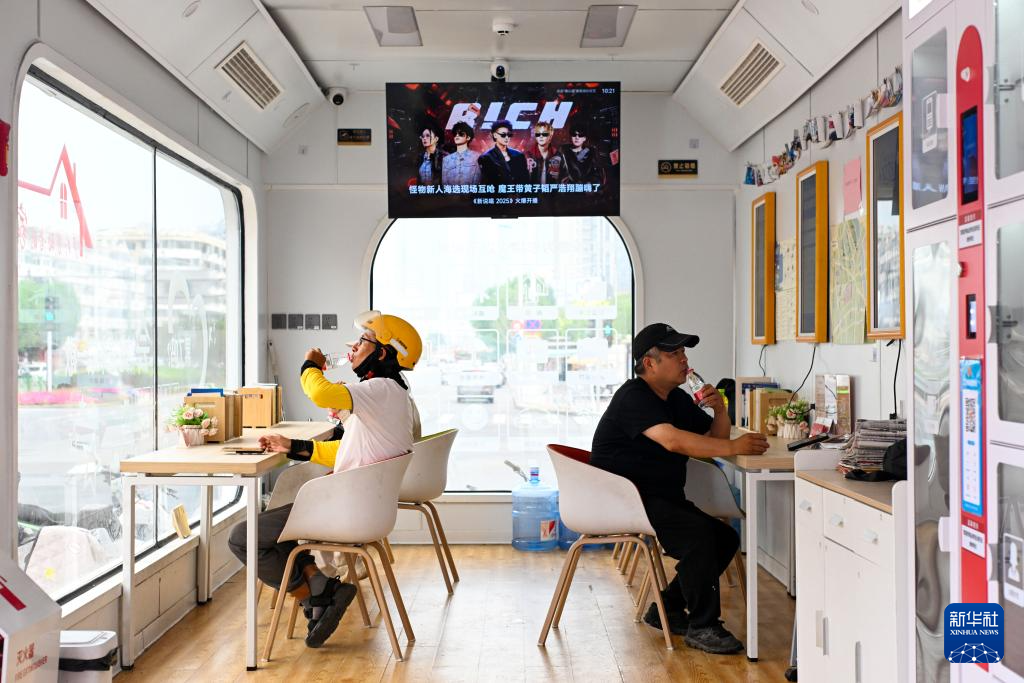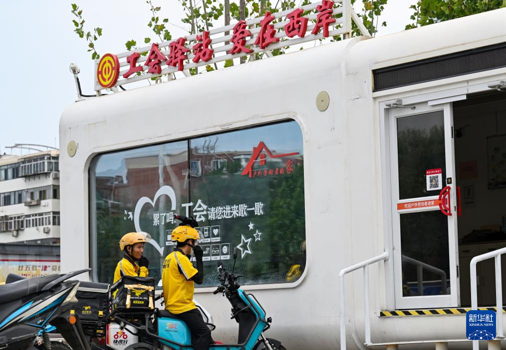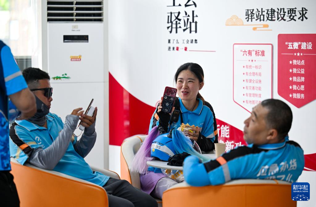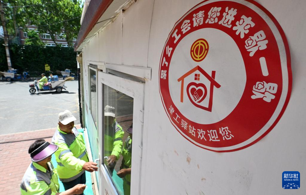 6月7日,环卫工人走进位于天津市河北区昆峰里小区的一处工会驿站。新华社记者 赵子硕 摄pagebreak