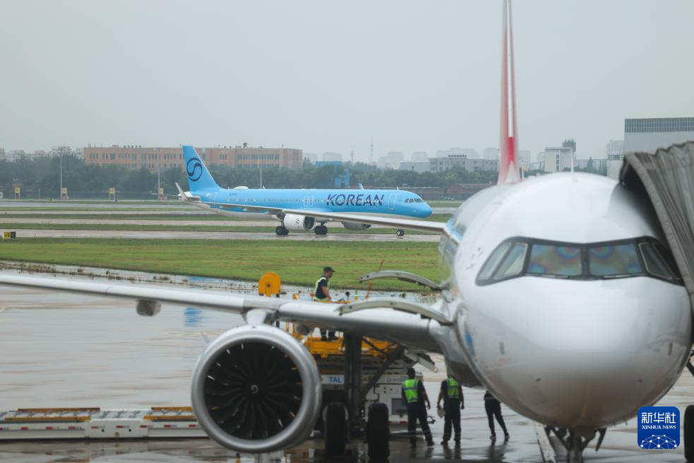 8月27日,两架国际航班相继抵达天津滨海国际机场T1航站楼。新华社记者 孙凡越 摄pagebreak