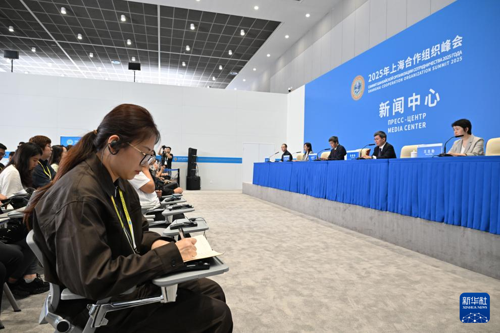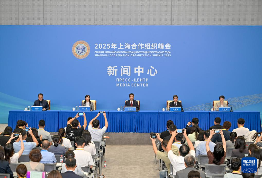 8月28日,2025年上海合作组织峰会新闻中心举行首场吹风会。