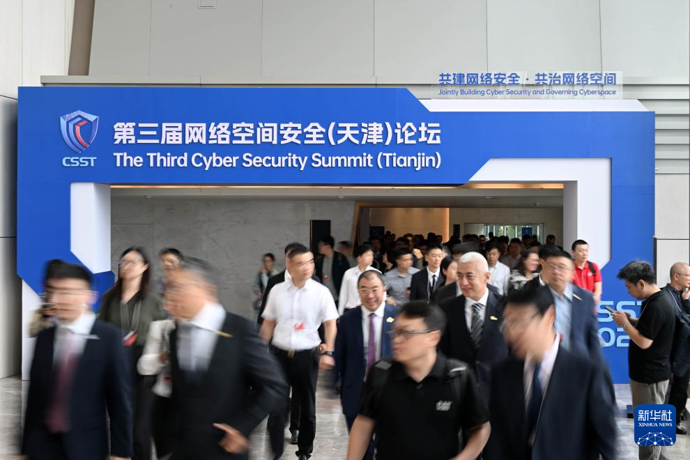 9月23日,嘉宾走出第三届网络空间安全(天津)论坛主会场。新华社记者 赵子硕 摄