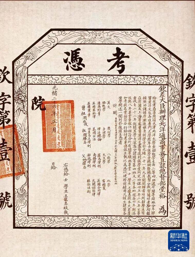 “钦字第一号考凭”