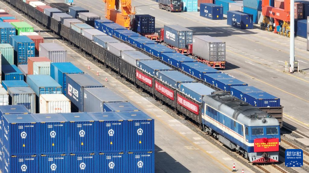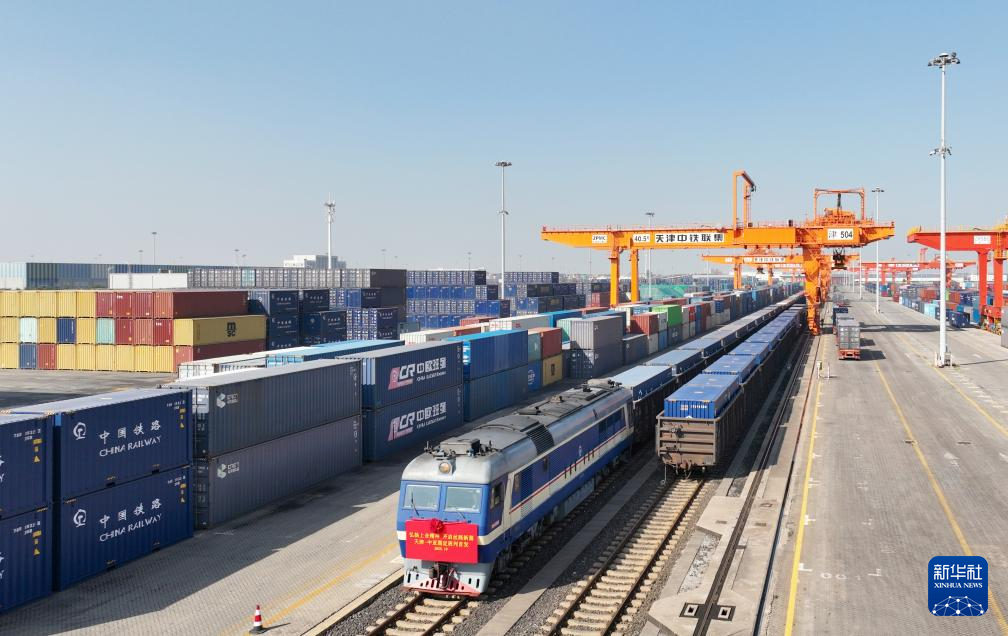 10月13日,伴随嘹亮悠长的鸣笛声,一列满载家电产品、汽车配件等货物的中亚班列从中铁天津集装箱中心站出发,将经由霍尔果斯口岸出境,驶向哈萨克斯坦等地。
