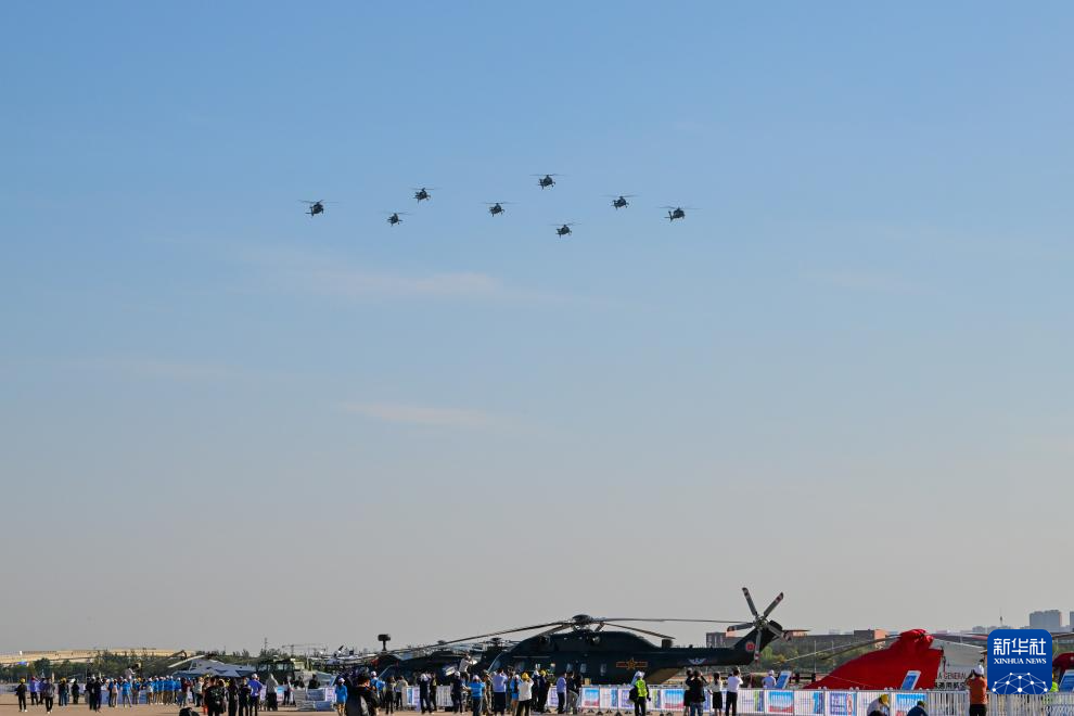 10月14日,参加飞行表演的直升机进行演练。新华社记者 孙凡越 摄pagebreak