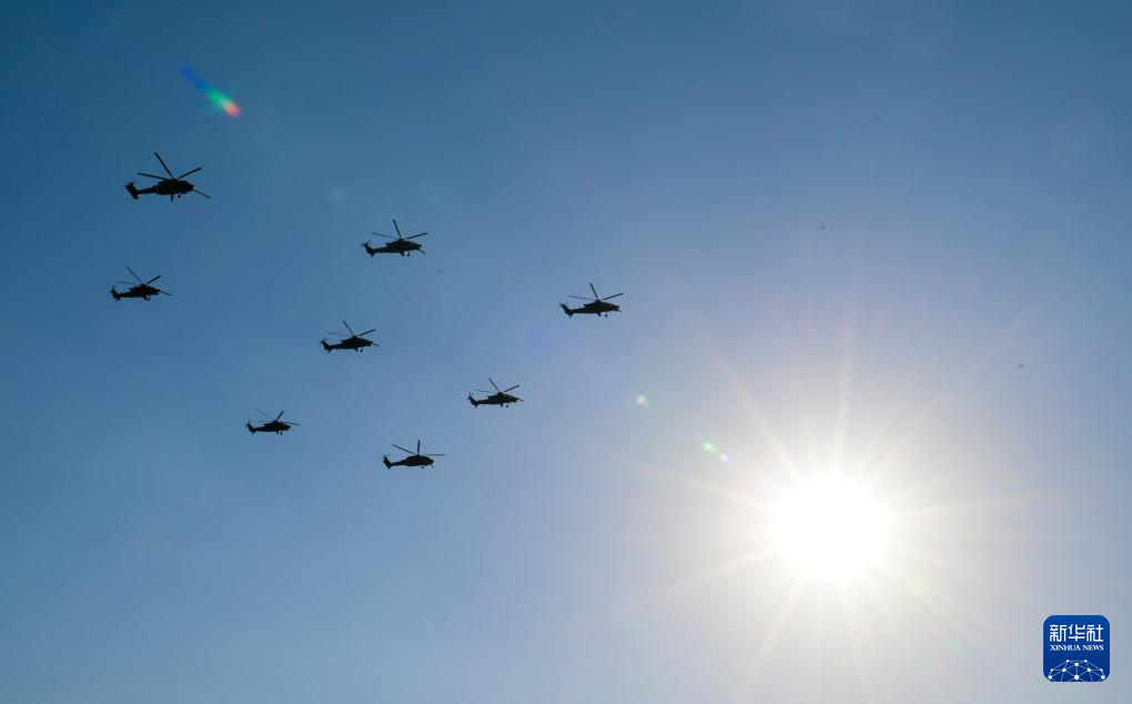 10月14日,参加飞行表演的直升机进行演练。新华社记者 李然 摄pagebreak