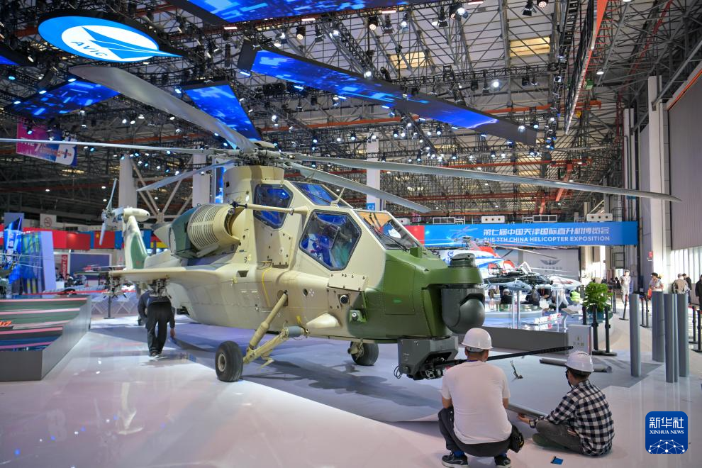 10月14日,工作人员在天津直博会直升机馆内布展。新华社记者 孙凡越 摄pagebreak