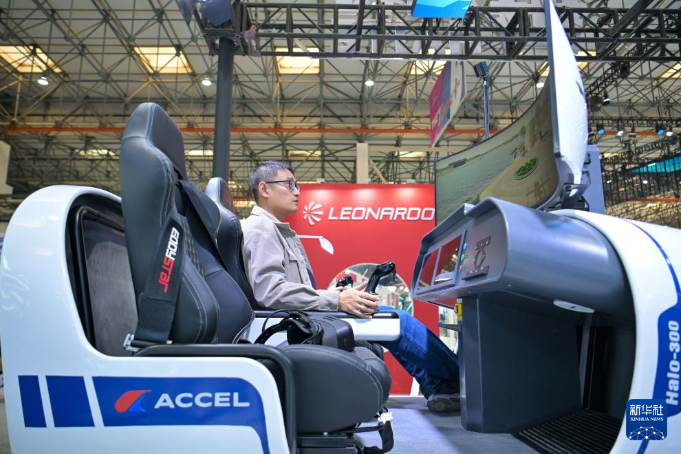 10月14日,工作人员在天津直博会直升机馆内调试模拟飞行体验设备。新华社记者 孙凡越 摄pagebreak