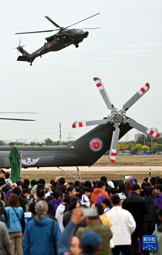 10月17日,直-20T直升机在进行飞行表演。新华社记者 赵子硕 摄