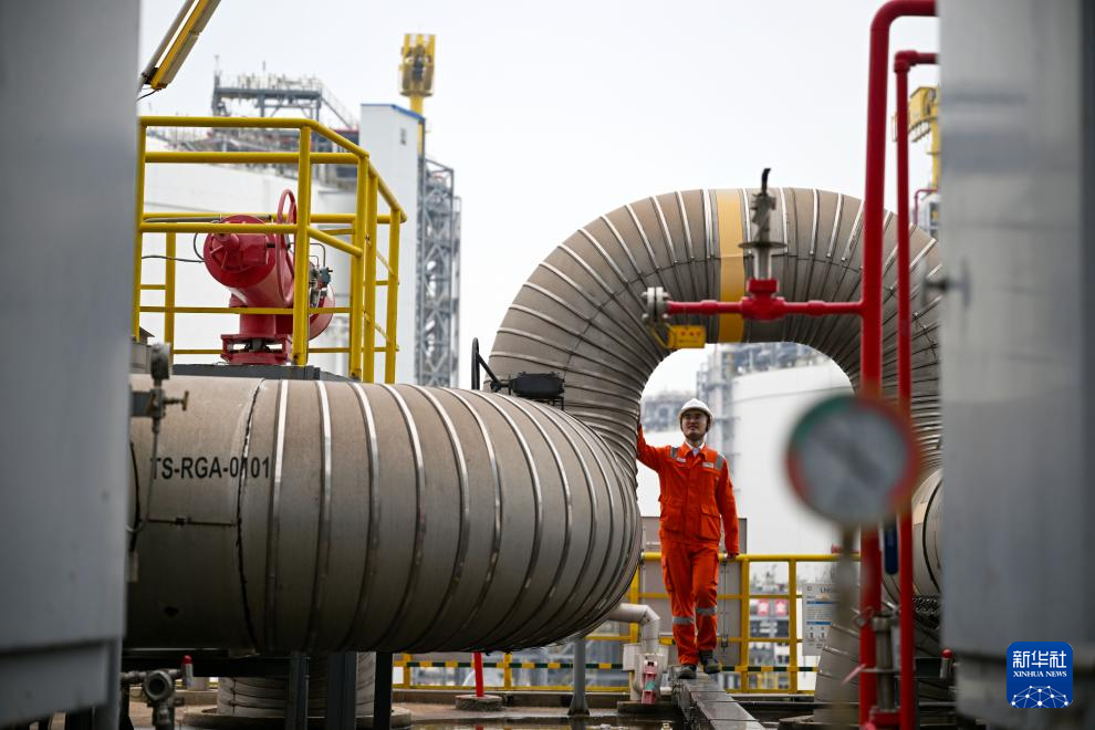 10月31日,国家管网天津LNG接收站工作人员在码头检查输气设备。新华社记者 赵子硕 摄pagebreak