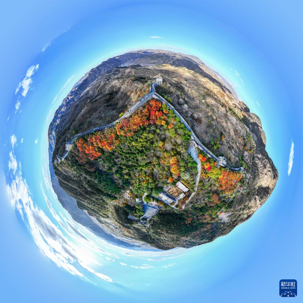 11月1日拍摄的黄崖关长城秋景(无人机全景照片)。新华社记者 陈晔华 摄