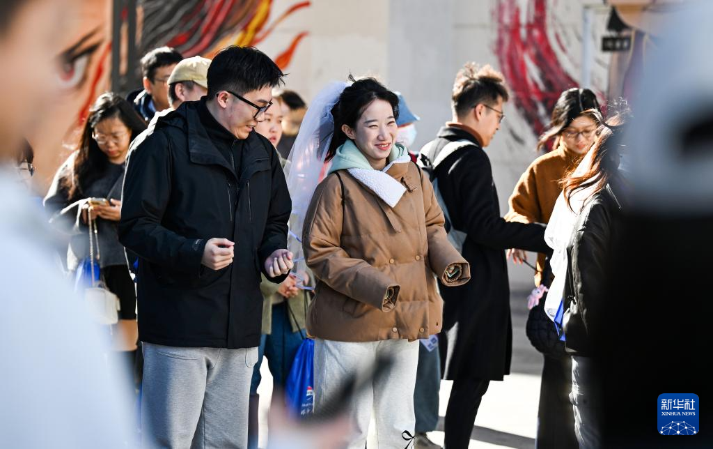 11月2日,参加活动的一对情侣冲过终点。新华社记者 赵子硕 摄pagebreak
