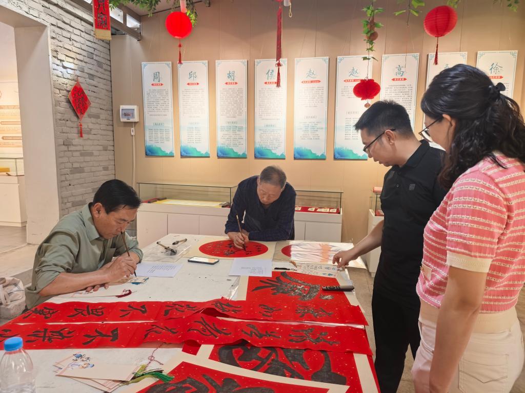 村民在吕官屯村家风家训馆内练习书法。(受访者供图)