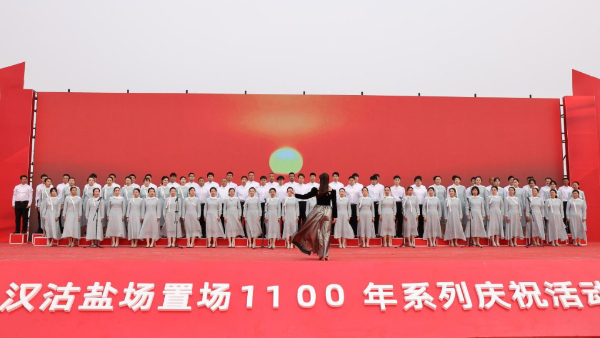 庆典现场,原创歌舞剧《镲韵纷飞》《玉砂谣》《盐》与歌伴舞《芦花》精彩上演,艺术化呈现盐场千年变迁。职工合唱《汉沽盐场场歌》气势磅礴。