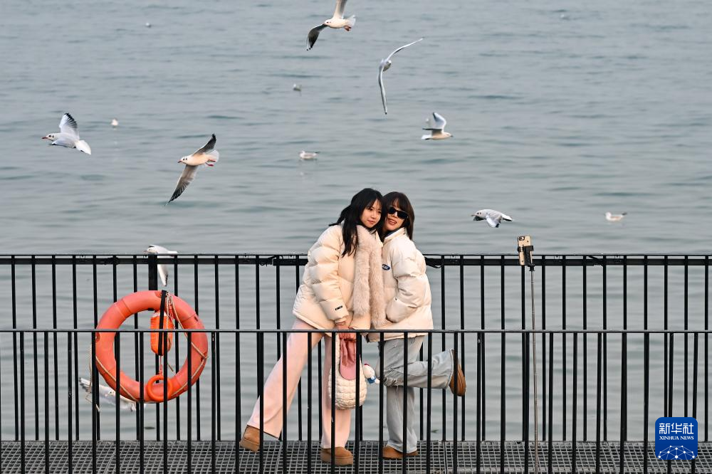 游人在观赏海鸥(12月10日摄)。新华社记者 李然 摄pagebreak