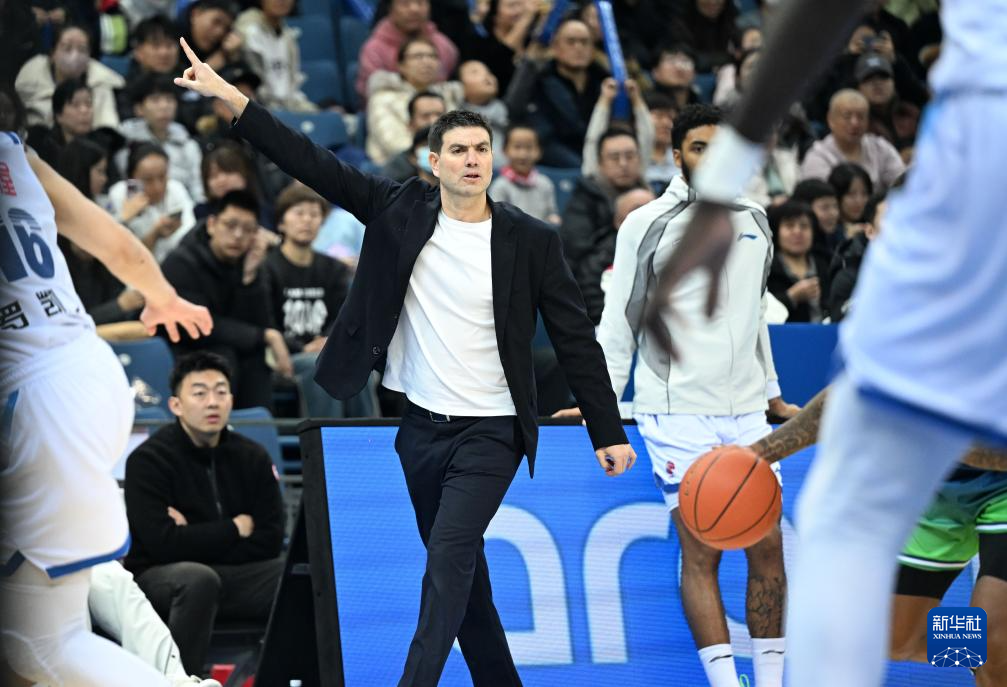 1月20日,宁波町渥队主教练哈里斯在场边指导球员。新华社记者 赵子硕 摄pagebreak