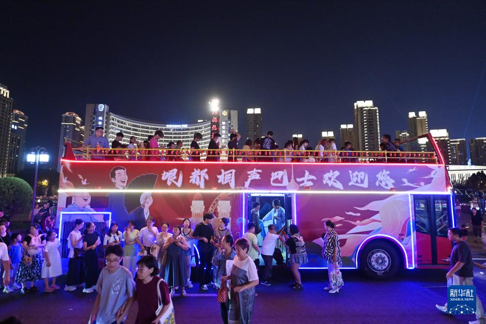 游人排队准备登上“相声巴士”(2025年8月13日摄)。新华社记者 李然 摄