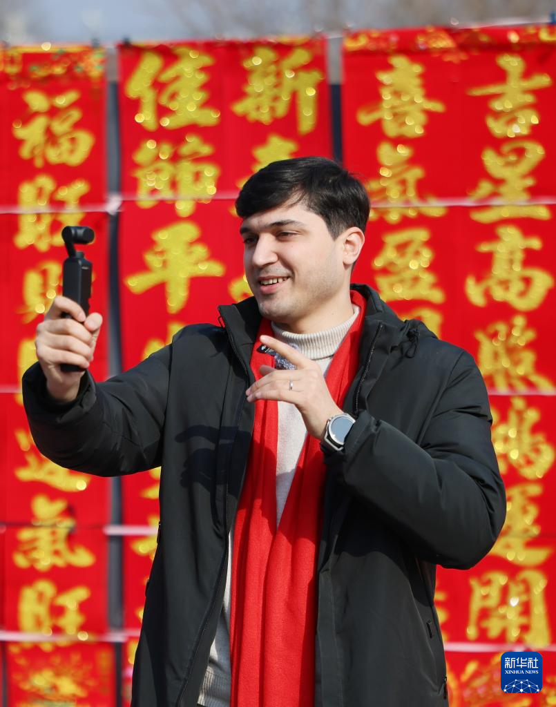 2月10日,吴莫凡在天津市蓟州区穿芳峪镇英歌寨村拍摄视频。新华社记者 李然 摄pagebreak