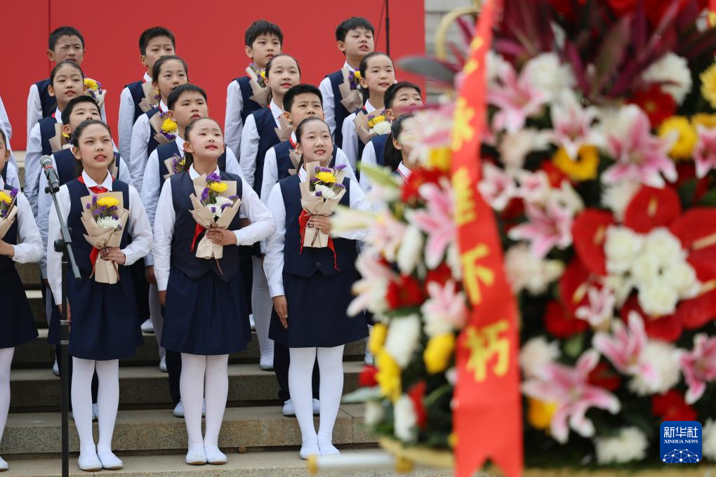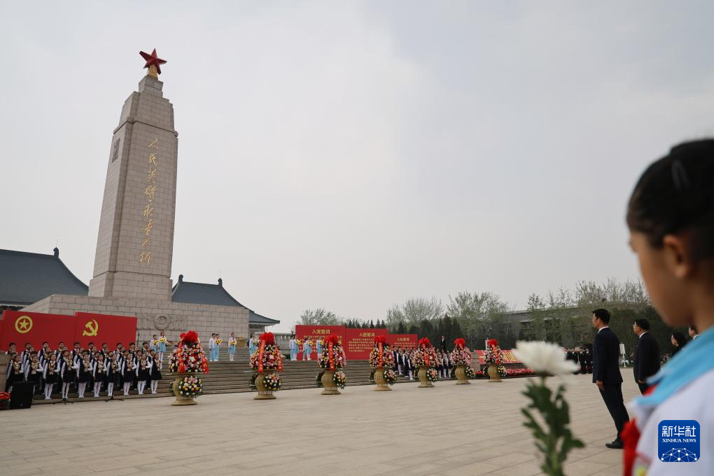 4月3日拍摄的天津市青少年清明祭英烈主题团(队)日活动现场。新华社记者 李然 摄