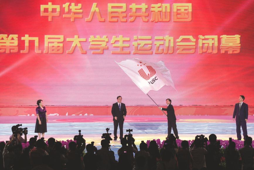 闭幕式最后进行了中国大学生体育协会会旗交接仪式。中华人民共和国第十届大学生运动会将由浙江省承办。
