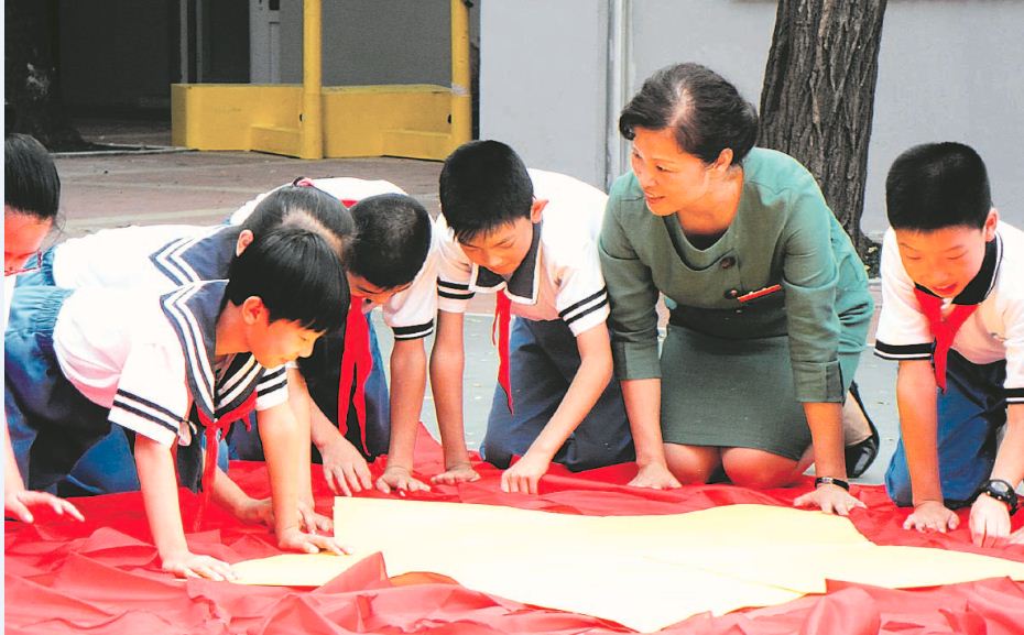 国庆佳节即将到来之际,红桥区西站小学师生用红领巾拼汇成五星红旗,表达全校师生的爱国之情。