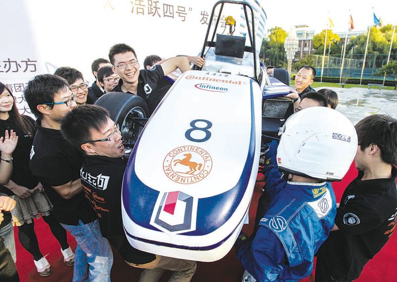 本报讯 10月9日,由天津大学FSC“北洋动力”赛车团队本科生自主设计、自主制造的方程式赛车“浩跃4号”举行发布仪式。这辆方程式赛车将于10 月14 日出征上海,参加有“学界F1”之称的2012中国大学生方程式汽车大赛。