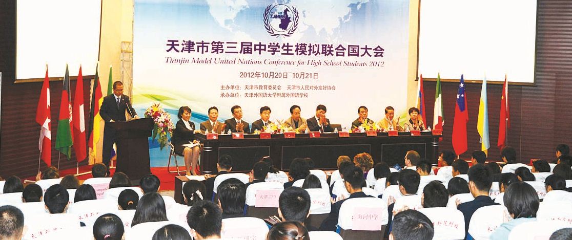 10月20日,由天津市教委、天津市人民对外友好协会主办,天津外国语大学附属外国语学校(以下简称"小外")承办的"天津市第三届中学生模拟联合国大会",在"小外"如期举行。本次大会吸引了来自南开中学、耀华中学、实验中学等14所学校的200余名师生参加。