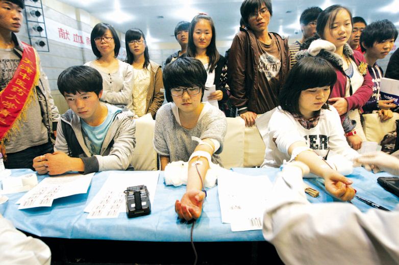 日前,在天津中医药大学进行的无偿献血活动中,来自6个院系的450多名学生踊跃报名,奉献爱心。据统计,十余年来,该校已有近6000名师生参加了无偿献血。