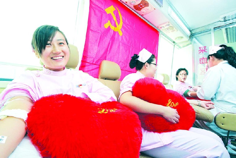11月8日,“庆祝十八大,感恩献爱心”无偿献血活动在天津医学高等专科学校举行。在学生党员带领下,1000多名学生献出热血,以实际行动表达对党的热爱之情。李想 摄