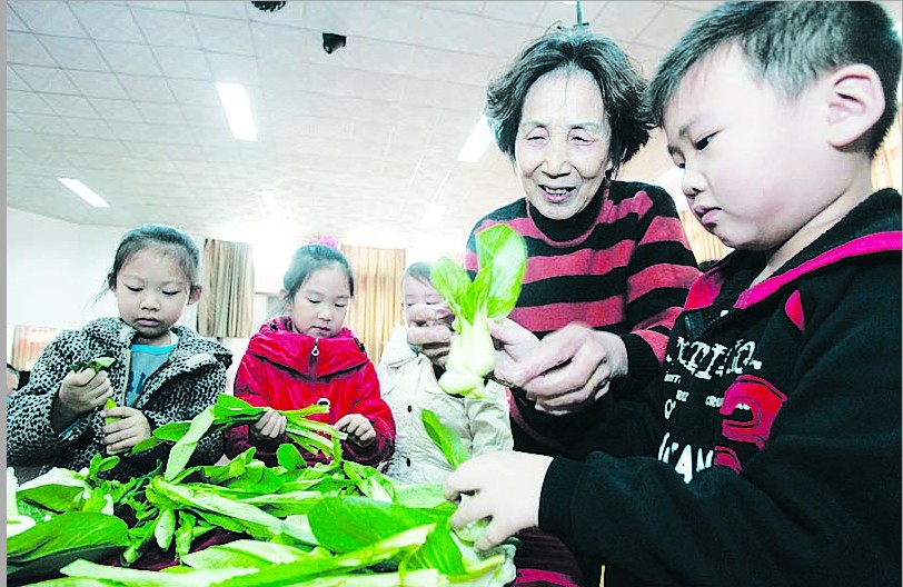 11月4日,红桥区新村小学“祖孙大讲堂”正式开讲。来自该校“爱心四老委员会”的爷爷奶奶作为讲师走上讲台,向一年级学生传授叠被子、系鞋带、择青菜等基本生活技能。
