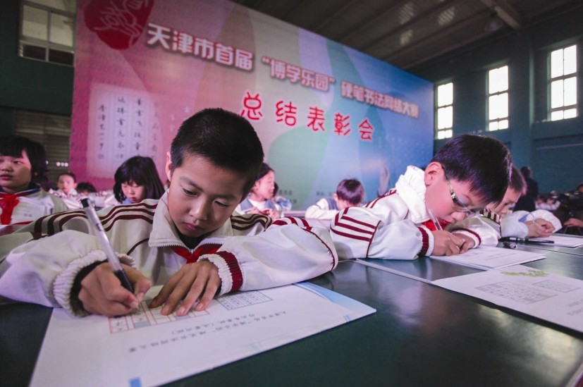 日前,本市首届"博学乐园"硬笔书法网络大赛总结表彰会在北辰区瑞景小学举行。来自本市各区县获得特等奖和一等奖的学生进行了现场书写展示。据悉,大赛共收到146所学校的5959件小学生硬笔书法作品,共评出获奖作品506件。