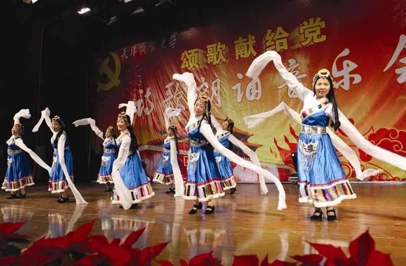 11月21日,天津商业大学举行"颂歌献给党"诗歌朗诵音乐会。师生们用高亢嘹亮的歌声、激情四溢的舞蹈和感情充沛的朗诵,讴歌党的光辉业绩,宣传党的十八大精神,激发全校师生的爱党爱国热情。