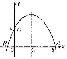 分析:观察图象可知,A点坐标是(8,0),C点坐标为(0,4)。从图中可知对称轴是直线x=3,由于抛物线是关于对称轴的轴对称图形,所以此抛物线在x轴上的另一交点B的坐标是(-2,0),问题转化为已知三点求函数关系式。