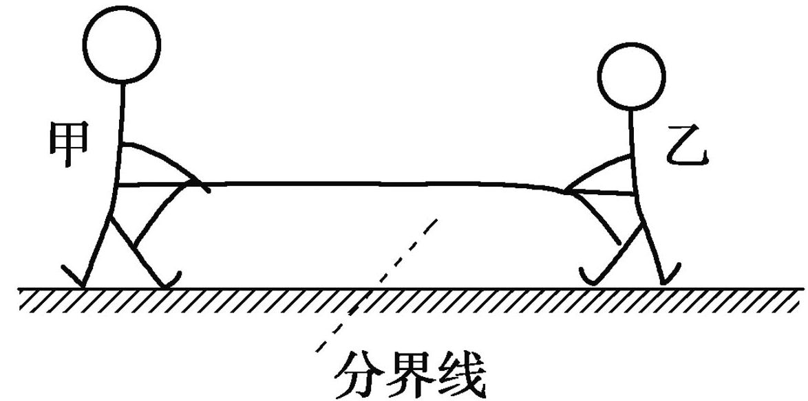 D.若乙收绳的速度比甲快,则乙能赢得“拔河”比赛的胜利。