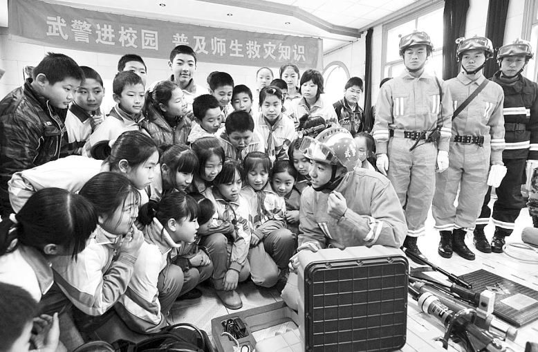 日前,针对冬季安全事故多发等情况,为提高学生的安全自救意识与能力,北辰区宜兴埠第一小学邀请武警六支队的官兵走进校园,为学生讲解安全知识。
