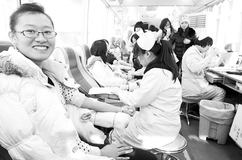 天津医科大学200 多名学生以无偿献血的方式迎接2013年的到来。