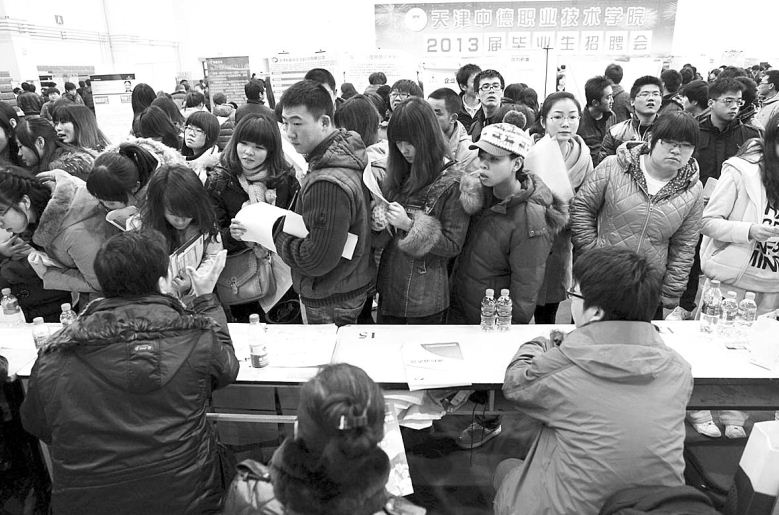 在日前举行的一场天津海运职业学院2013届航海类专业毕业生双选会上,455名相关专业毕业生与招聘公司现场签订了就业协议;还有部分学生与用人单位初步达成了就业意向。
