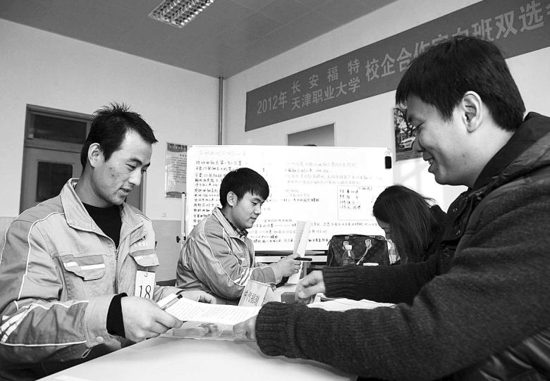 “说到底,还是社会需求决定就业前景。”戴裕葳认为,一些本科生之所以在就业方面竞争不过高职生,不是因为他们学历与学识不够,而是因为实用技能不够。还以模具系为例,这个专业的设置就是根据区域经济发展大势而定的。天津滨海新区的开发开放,除了需求高学历人才外,还为实用型人才提供了更多岗位。80个重大工业项目落户滨海新区,将创造200万个就业岗位。这些高新技术项目对数控机床、工业模具方面的人才需求旺盛。天津轻工职业技术学院正是看准了这个趋势,在专业设置上大胆改革,砍掉了一部分理论专业,加强了实用专业。实践证明,这条路走对了。从2005年起,天津一汽丰田、天津汽车模具有限公司等知名企业就主动上门接洽,并将该院确定为员工委培基地。该院毕业生每年都是“连锅端”,实际上,学生一进校门就已经有了就业岗位。