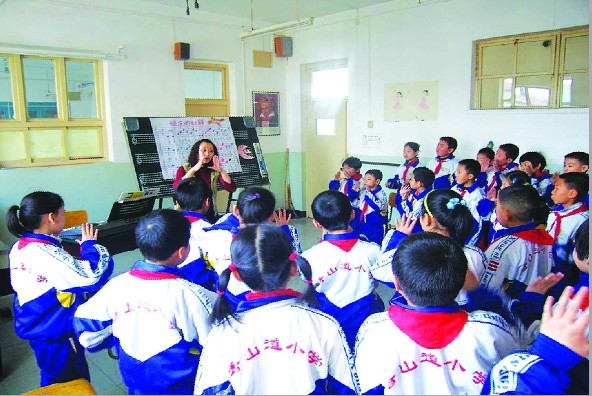 在河东区香山道小学的音乐课堂上,学生首先要学习的不是识谱,而是要了解歌词和韵律的内涵意义。“国歌”是四年级的教学内容,音乐学科组的教师们在集体教研后决定利用课件向学生介绍“国歌”的创作背景以及词曲作家。这样的导入,不但激发了学生的学习兴趣,调动了学生的学习主动性,还对学生进行了革命传统教育。“通过视频情境展示,词与曲的结合,激发了学生们的爱国热情。”校长陈立萍说,“学校在新课标以及研教材、研课标、研学生的‘三研活动’引领下,为提高课堂教学效率,充分运用新课标理念研究教材的知识结构,把握教材需求,研究新教法,创造新教法。在教学中,学校的每位教师都有其独特的教学风格,并利用各自的教学风格感染学生,激发学生的学习热情,把课堂变得更加有生气、有特色。”