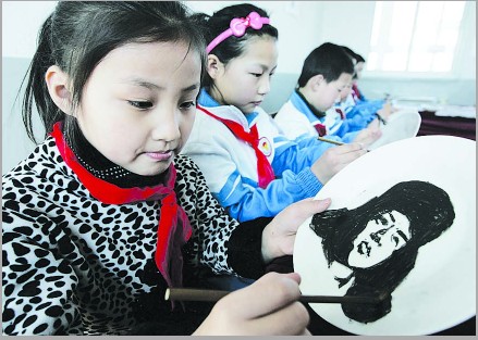 和平区哈密道小学雕塑社团的学生雕刻心中的雷锋,缅怀雷锋,学习雷锋。