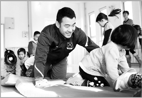 随着越来越多的男教师走进学前教育行列,在这个原本女性处于主导地位的行业中,男教师已占据一席之地。本市很多新建幼儿园也配备了男教师,完善了教师队伍结构。图为不久前刚刚投入使用的河北区第七幼儿园中,男教师带领孩子们在室内开展体育活动。 刘东岳 摄