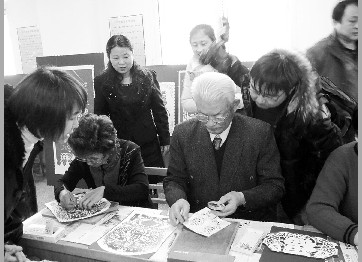 日前,滨海新区塘沽博才小学与塘沽老年书法研究会、剪纸研究会共同举办了“剪花飘滨海,书红赞新区”联谊活动。大家写楹联、剪窗花,互相切磋,传递着爱心与和谐的讯息,展示了学校传统文化教育的成果。 魏颖 文 丁咏梅 摄