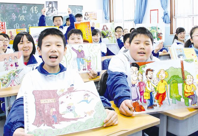 ▲日前,和平区艺术中学联合永丰里社区开展“学雷锋 讲文明 树新风”自创公益广告画活动大赛。学生围绕生态文明建设、交通安全、食品卫生、健康知识等主题,动手制作公益广告,弘扬文明向上的风尚。