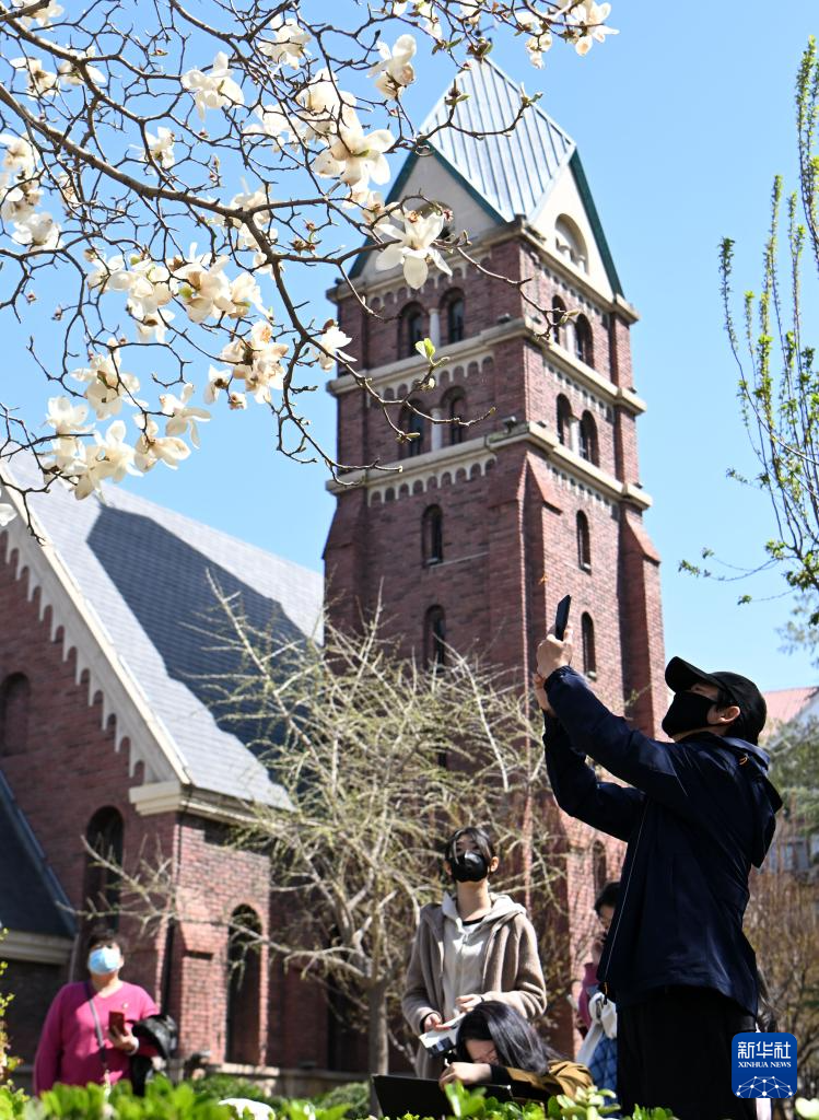 3月29日,游客在位于天津市五大道风景区的民园广场观看海棠花音乐会。新华社记者 赵子硕 摄pagebreak