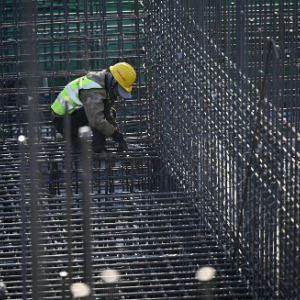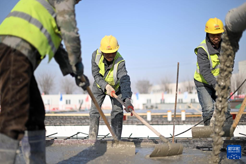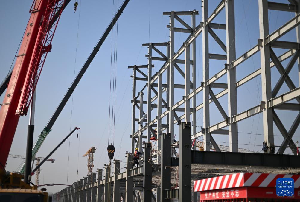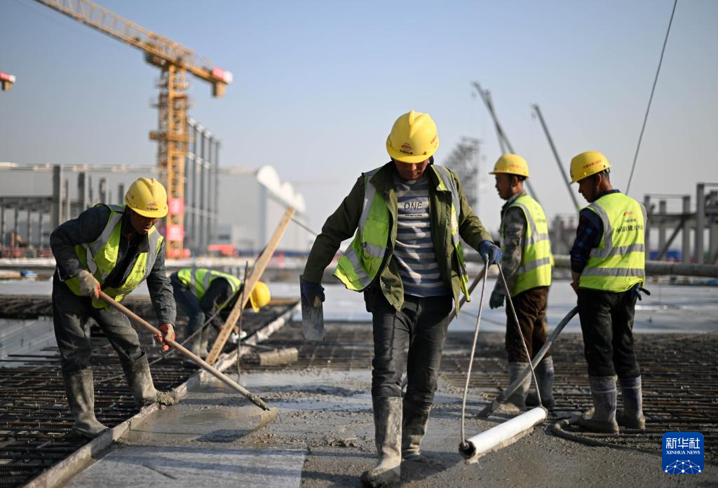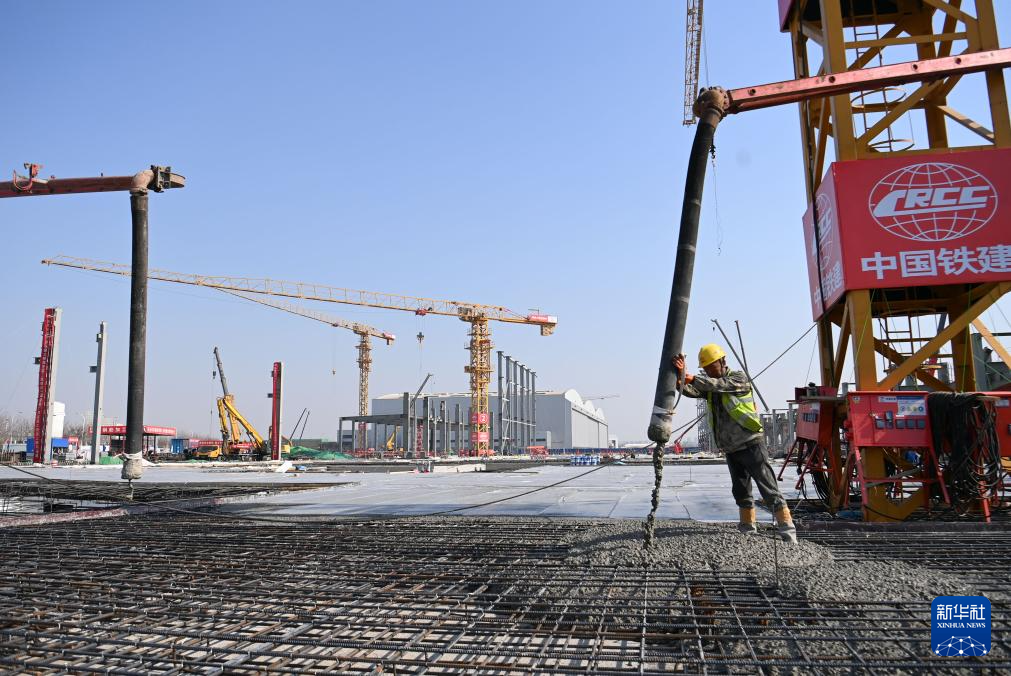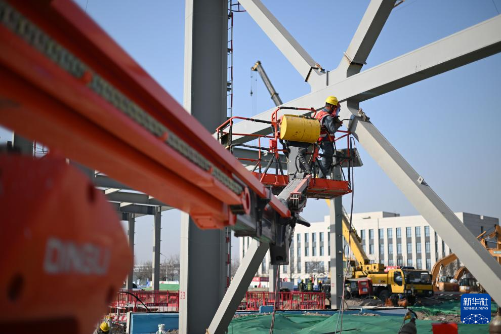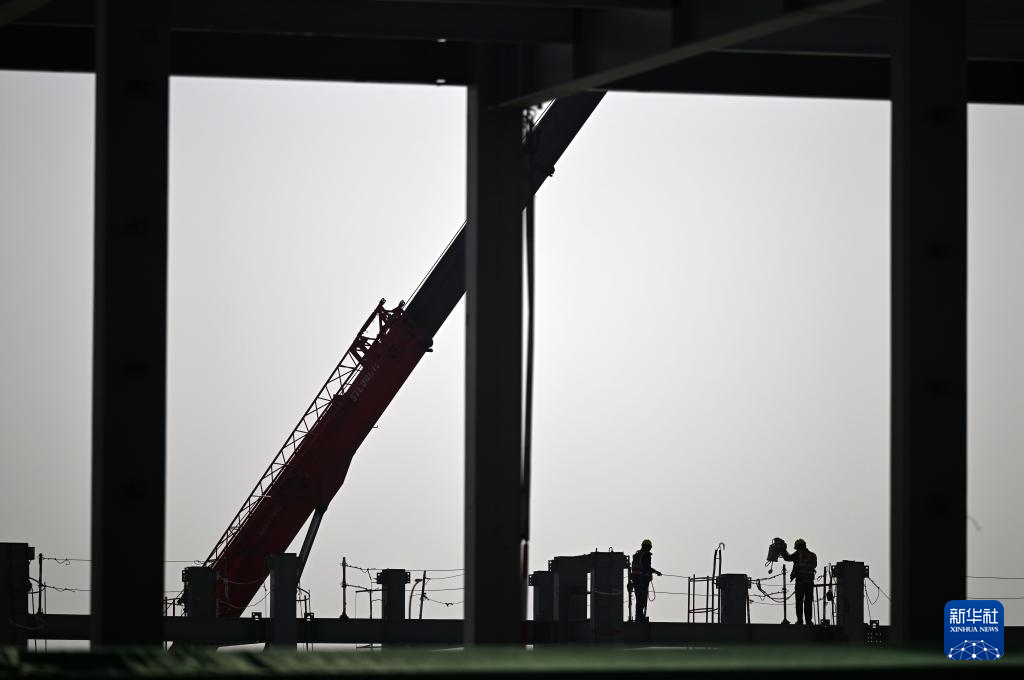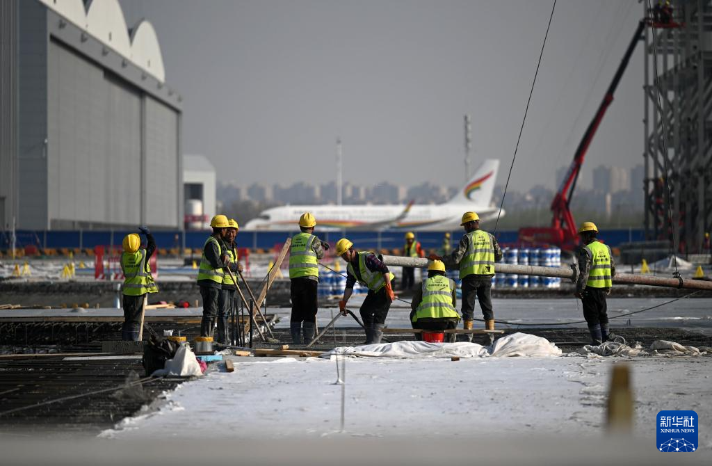 3月31日,工人在空客天津第二条总装线项目建设现场施工作业。新华社记者 赵子硕 摄