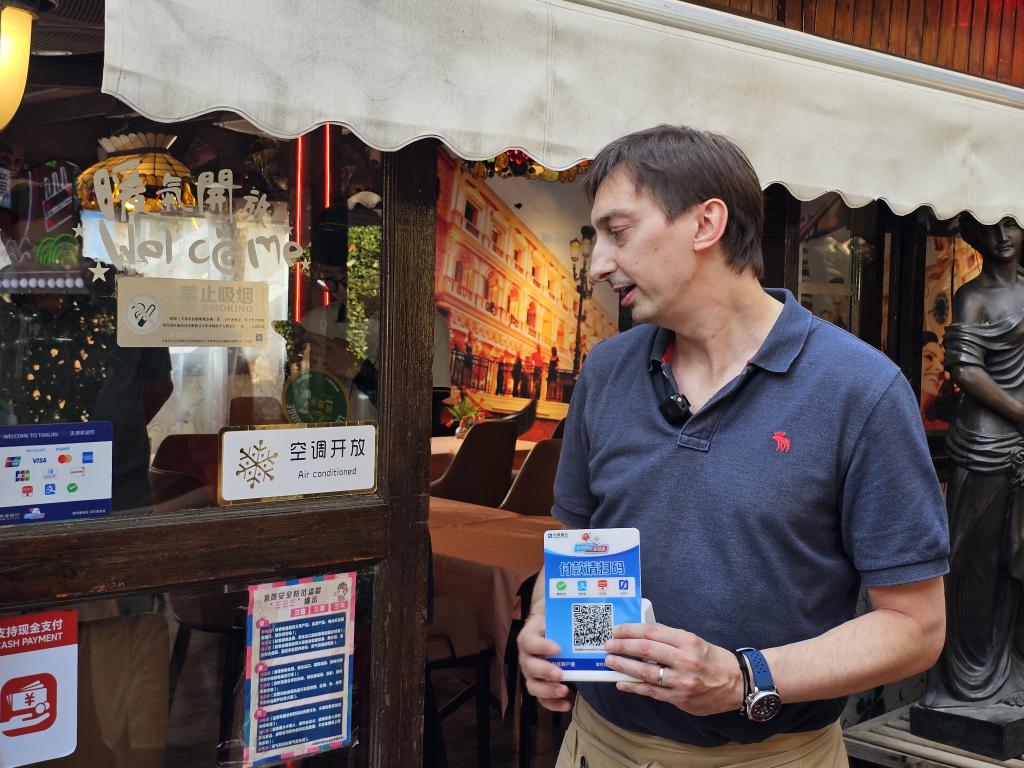 “最开始以现金支付为主,后来中国顾客已经习惯支付宝或者微信支付。如今,越来越多国际顾客‘入乡随俗’,他们可以用境外银行卡Visa、Master等绑定中国的移动支付软件,和中国顾客享受同样的支付便利。”加布里埃尔说。
