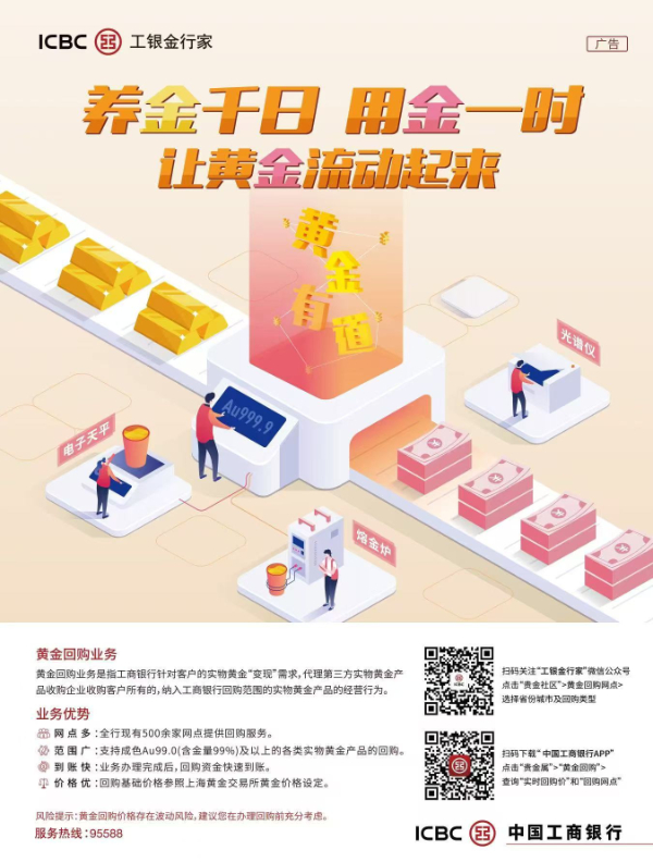 黄金回购业务是指工商银行针对客户的实物黄金“变现”需求,代理第三方实物黄金产品收购企业收购客户所有的,纳入工商银行回购范围的实物黄金产品的经营行为。