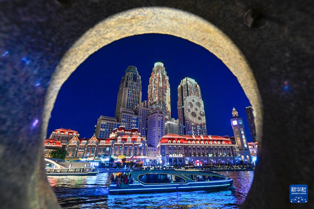 8月25日晚,市民游客乘船在天津海河上欣赏城市夜景。新华社发(杜鹏辉 摄)pagebreak