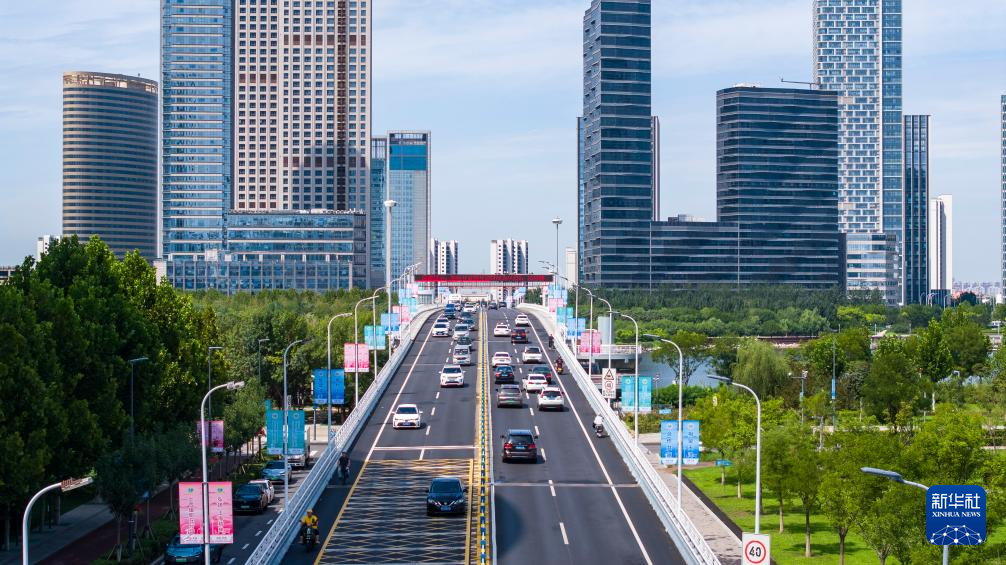 在天津市滨海新区拍摄的城市街景(无人机照片,8月22日摄)。新华社记者 赵子硕 摄pagebreak