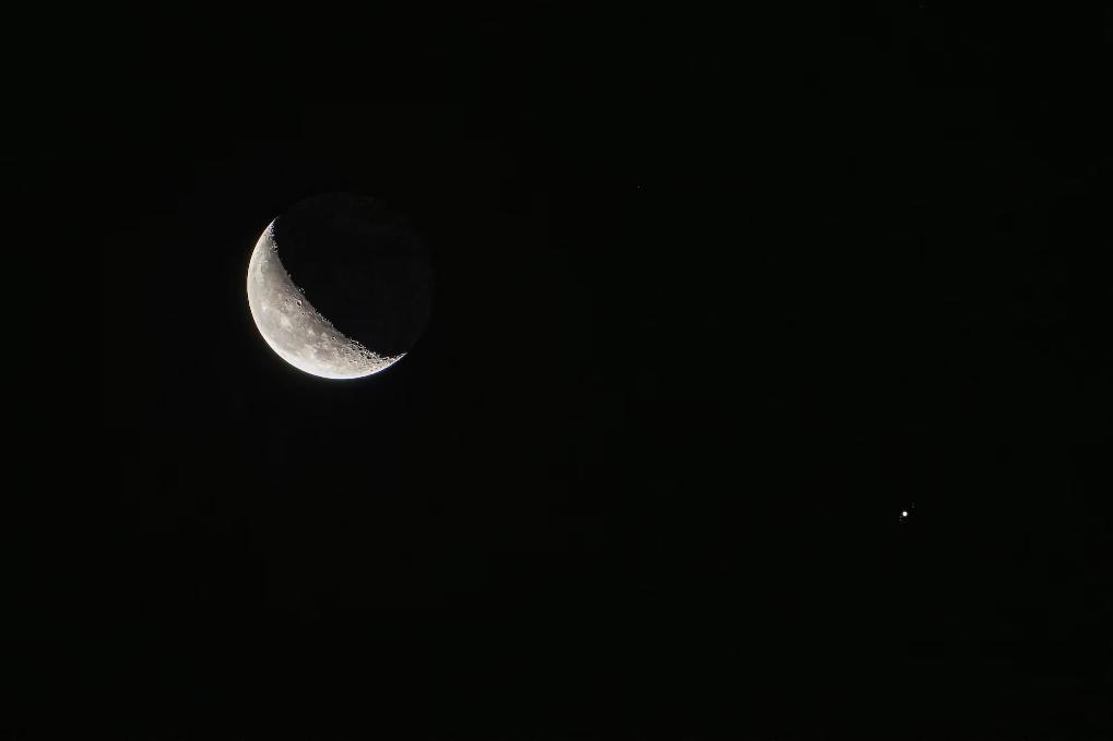 如何更好地观赏这幕“星月童话”?“如果天气晴好,只需面向东方天空,寻找一个视野开阔之地,微微抬头即可看到。除裸眼观测外,有条件的公众使用双筒望远镜或小型天文望远镜观测,还可以清楚地看到木星的一些细节,如两条云带等。”刘仲利说。(记者周润健)